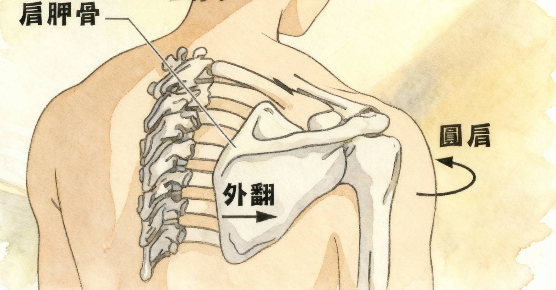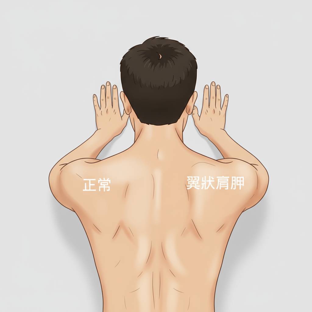 此類異常會讓肩胛骨的下角或外緣向後翹起,從背後觸摸時會感覺到一塊「凸出的骨頭」。這種情況常見於有含胸駝背、肩膀前傾習慣的人。