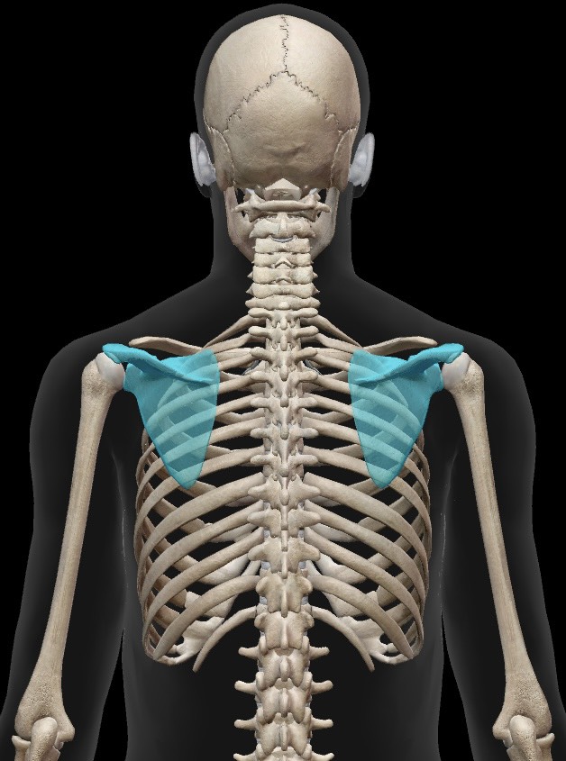 肩胛骨在上背的位置。(圖片來源:Atlas 解剖APP)