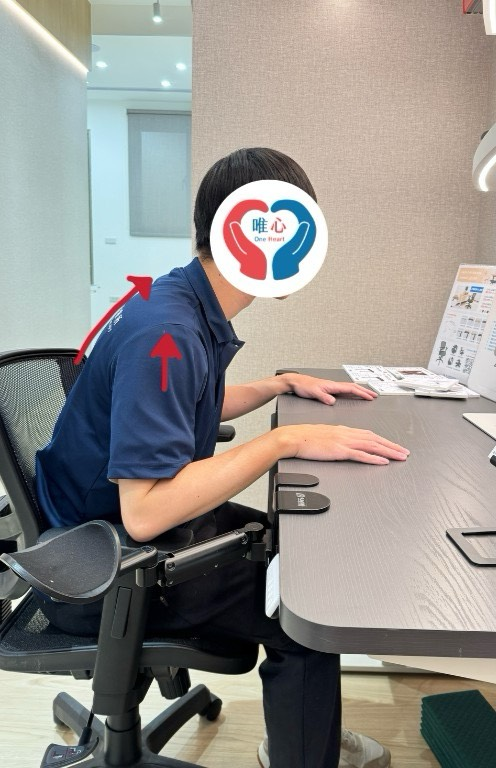 螢幕高度與眼睛平行、鍵盤靠近身體、手肘微彎靠身。使用扶手或桌面支撐前臂,避免手臂懸空。