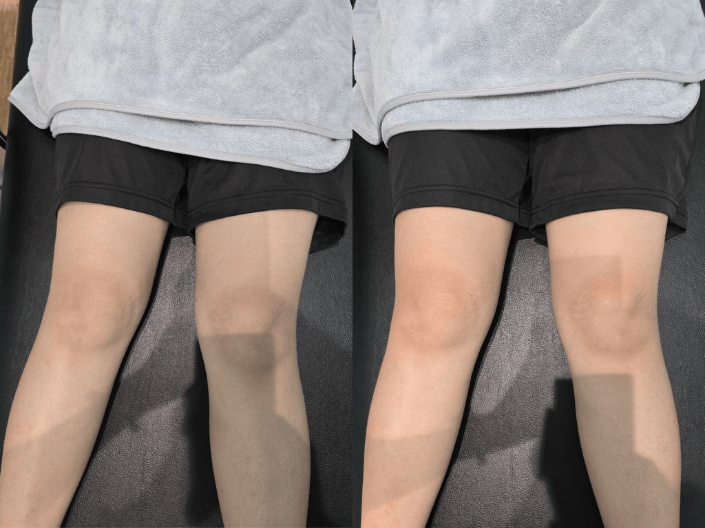 在治療前個案原本走路會覺得下肌整個都很緊繃,無法輕鬆的走路。治療後,下肢被好幾層保鮮膜套著的感覺也消失,同時膝蓋內側疤痕的長期疼痛有明顯改善!