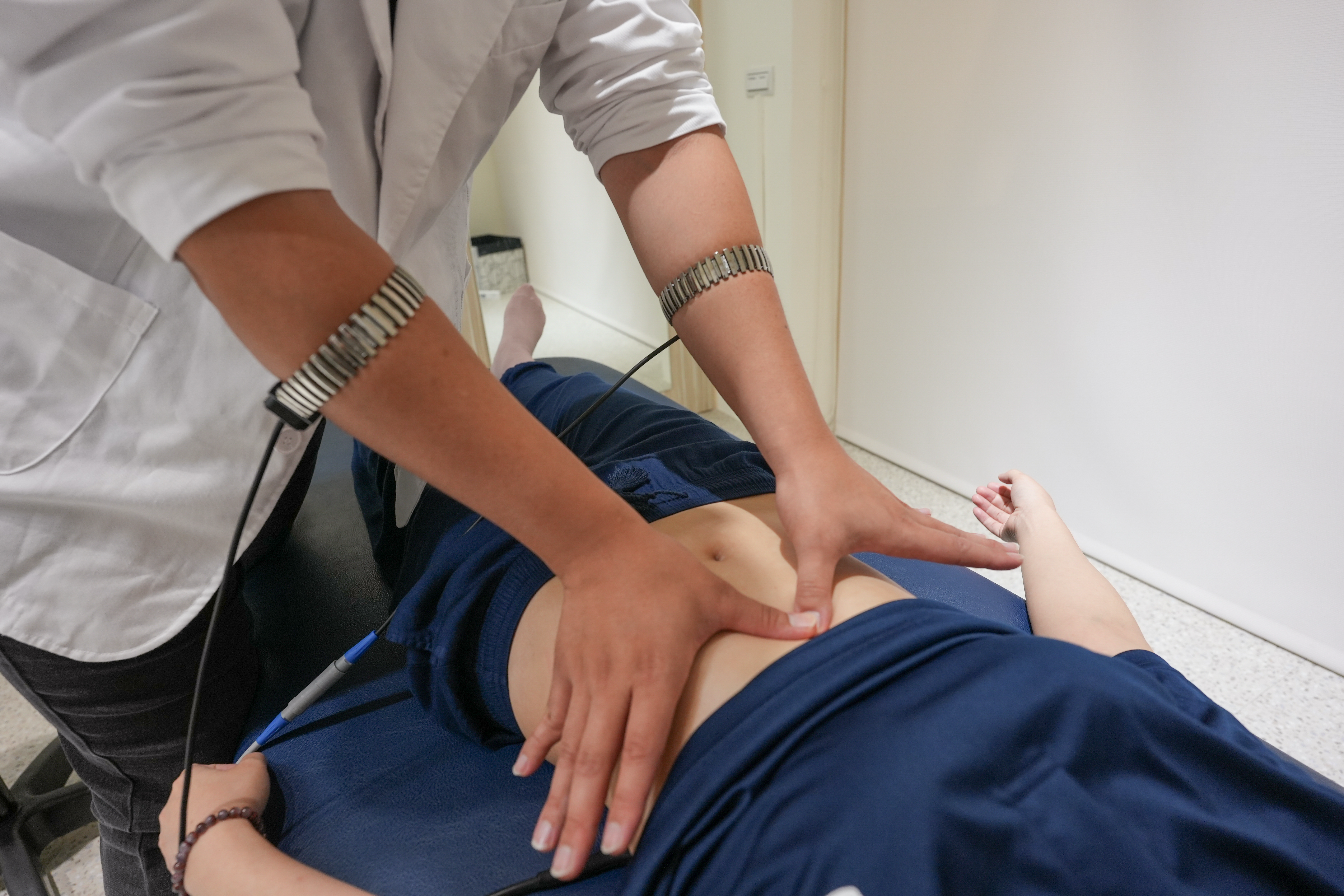 唯心「太陽之手」技術,放鬆腹部周圍緊繃肌肉。(圖片來源: 唯心運動物理治療所)