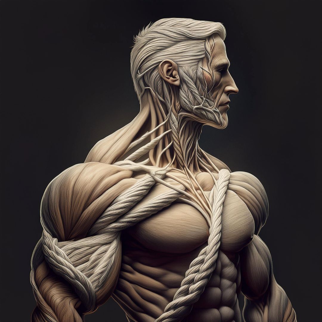 可以試著想像身體的肌肉像是一條條的繩子,支撐著身體的各個部位。(圖片來源:AI)