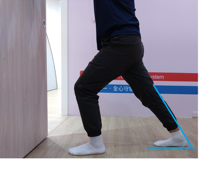 面對牆壁,一腳彎、一腳直,伸展後腿小腿,後腳跟不離開,維持20-30秒,完成3次。重點是後腳腳踝的角度伸展到多大。
