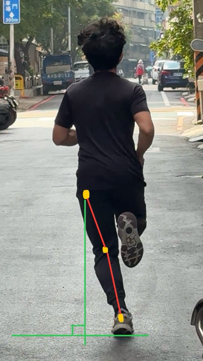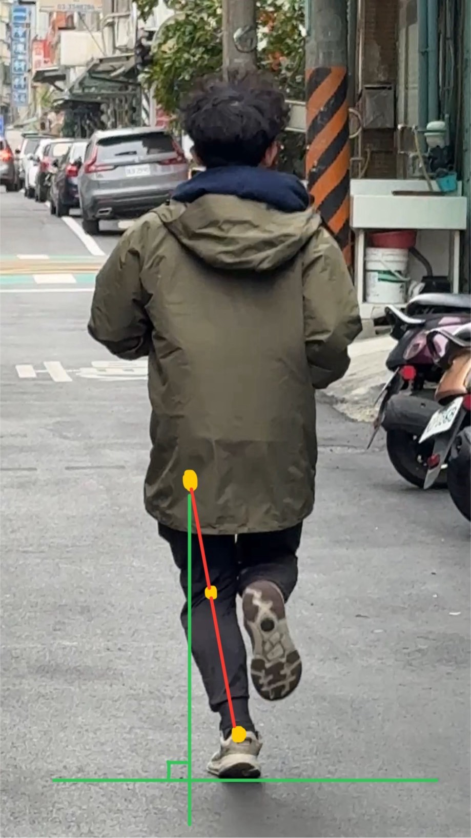 ✅ 左下肢與地面的垂直角度變大,承重時更為直立